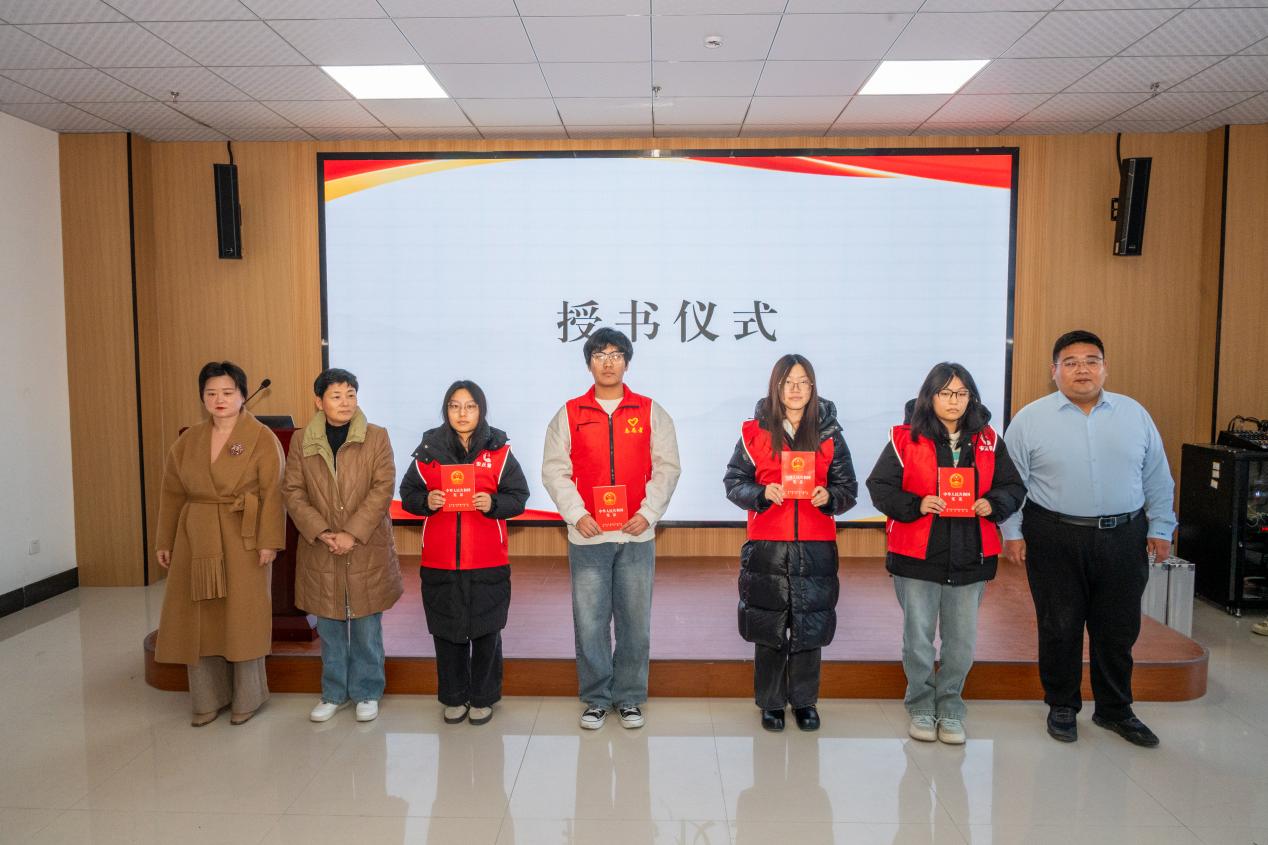 仪式上,学校副校长田敬成致辞,阐述了法治教育与人才培养融合的意义。安丘市司法局党组成员、副局长鹿文萍解读普法工作重点并对志愿队提出工作期望。随后,与会领导为高校普法志愿服务队授旗,并为学生代表颁发法治书籍。市司法局崔守成科长详细介绍“安丘市智惠学法服务平台”功能及使用方法,助力师生便捷学法。最后,学院法治副校长作总结讲话,就深化校地普法合作表态。